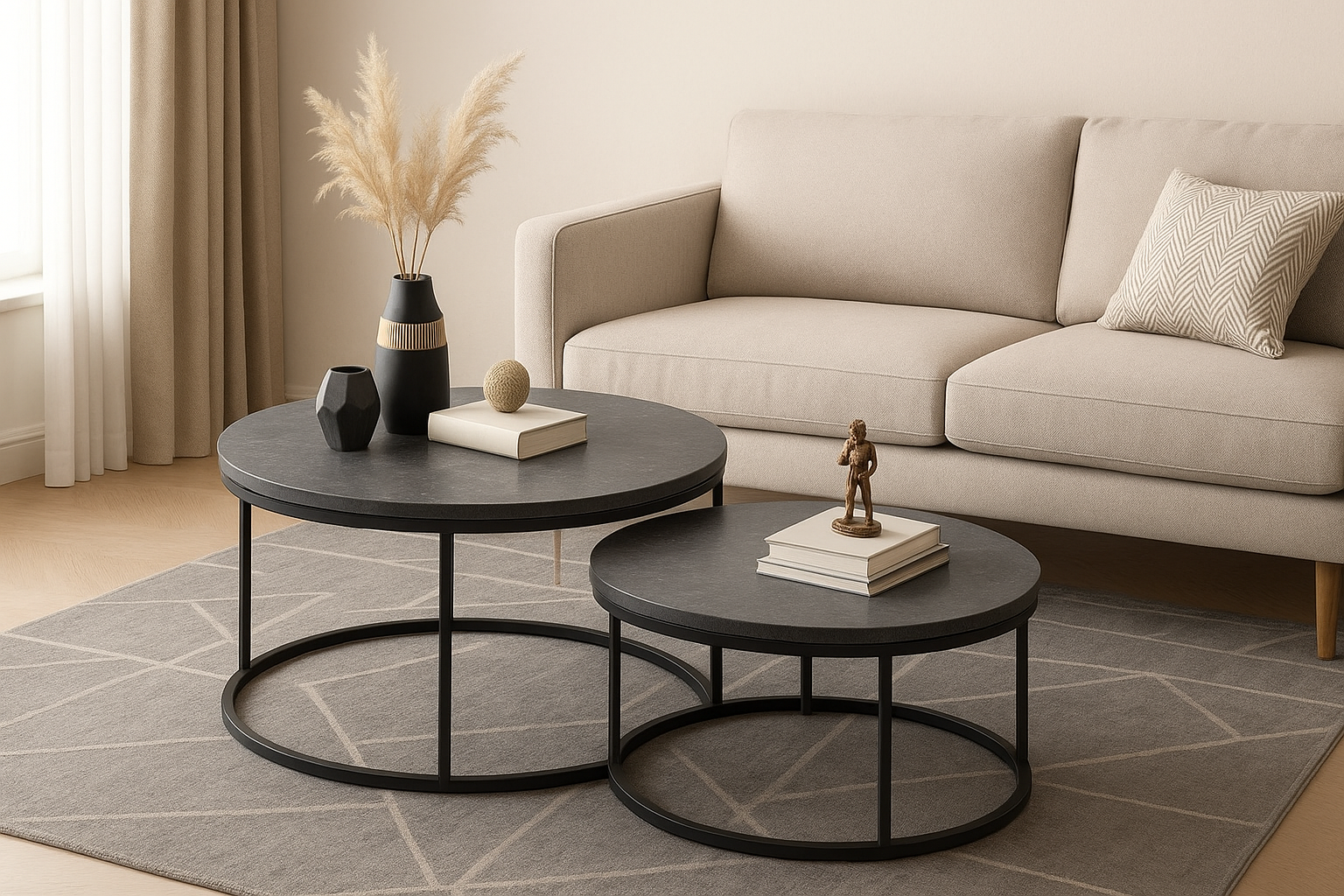 Center Table for Living Room Coffee Table Tea Table End Table Decorative Item Marble Design/ ONLY BLACK COLOUR Engineered Wood Top